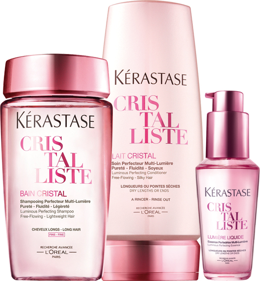 毛先まで均一に透明感のあるツヤを与え、軽やかな質感へと導くクリスタリストシリーズは、シリーズカラーの淡いピンクのボトルと女性らしい魅力を引きたてるスイートでフルーティーな香りが特徴。