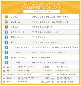 HOME > ランキング > COSME at MAG 7月集計・2014上半期ベスコスランキング > ranking201407bestcosme