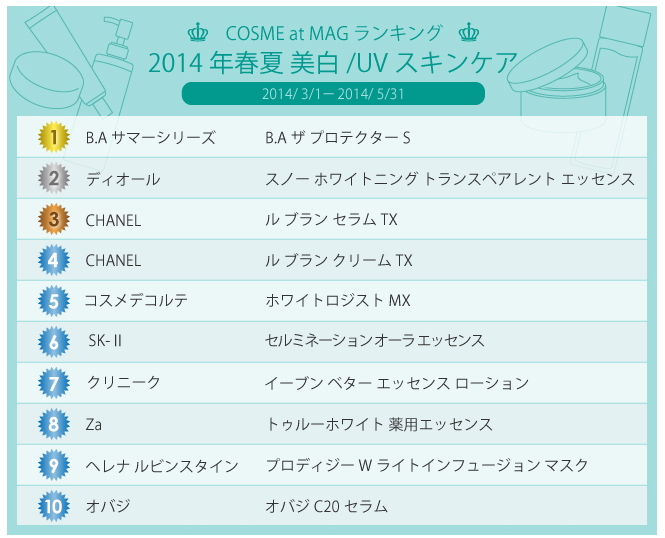HOME > ランキング > COSME at MAG 2014年春夏 美白/UV スキンケア ランキング > ranking2014ss