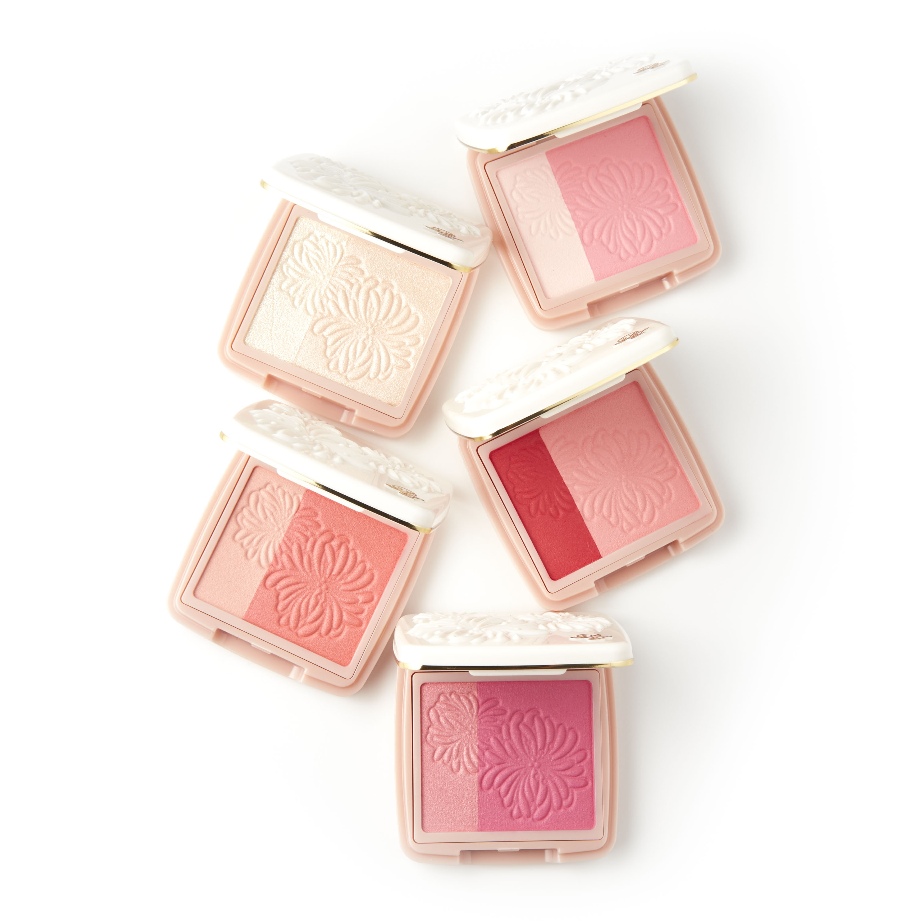 この春デビューの「パウダー ブラッシュ」は、モイストフィットベース採用により透明感をアップし、オイルコーティングした高発色フルピグメントパウダーが皮脂の色ぐすみを抑え、つけたての鮮やかな発色を長時間キープさせる優れもの。ブランドのシンボルモチーフのクリザンテーム(西洋菊の一種)が刻印されています。