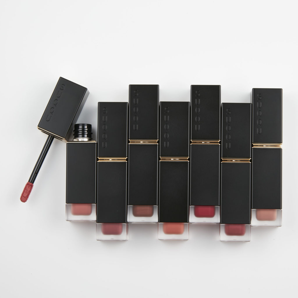 SUQQUの得意とするオイル技術により軽さと心地良さを叶え、マスカラに使用されている皮膜材に着目し高粘度の油剤を加えることで、しっかり密着しながらも、なめらかに色をキープ。唇にのせると軽いムースのような質感で伸び広がり、オイルの揮発により色の薄膜となり唇にぴったりフィット。均一で高密度な発色によるみたままの色で、唇をドラマティックに彩ります。オイルを多めに配合し、しっとりとした艶感を高めた、やわらかな輝きのGLOWに対し、FOGは被膜材を多めに配合しよれにくさを高めた、セミマットなふわっとフォギーな質感。