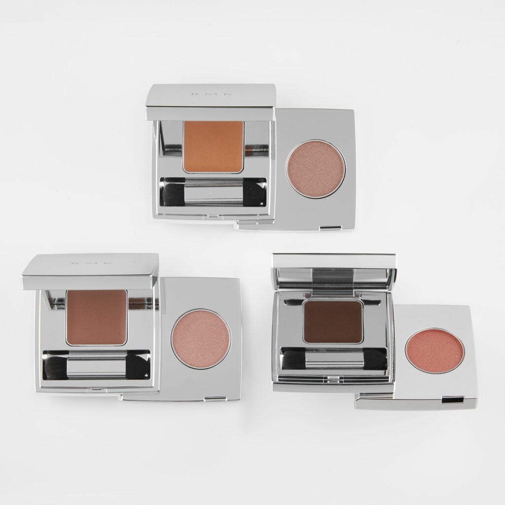 上段にクリーム、下段にパウダーがセットされた「RMK ザ ベージュライブラリー アイシャドウデュオ」は、下段をスライドさせることで、異なる2色の質感を楽しむことができ、遊び心を刺激される、シルバーの2段式パレット。上段の軽やかなオイルを抱え込み、繊細なラメを配合したクリームは、まぶたにのせるとなめらかに広がり、まぶたにしっかり密着。クリアな発色でしっとりとつややかな目もとに。下段の透明感の高いキメ細やかなパールが配合されたパウダーは、まぶたにとけ込むようになじみ、軽やかでカジュアルな仕上がりに。単色での使用はもちろん、2つを重ねれば、繊細なきらめきを纏った、透明感のある魅惑的なムードを演出することができます。