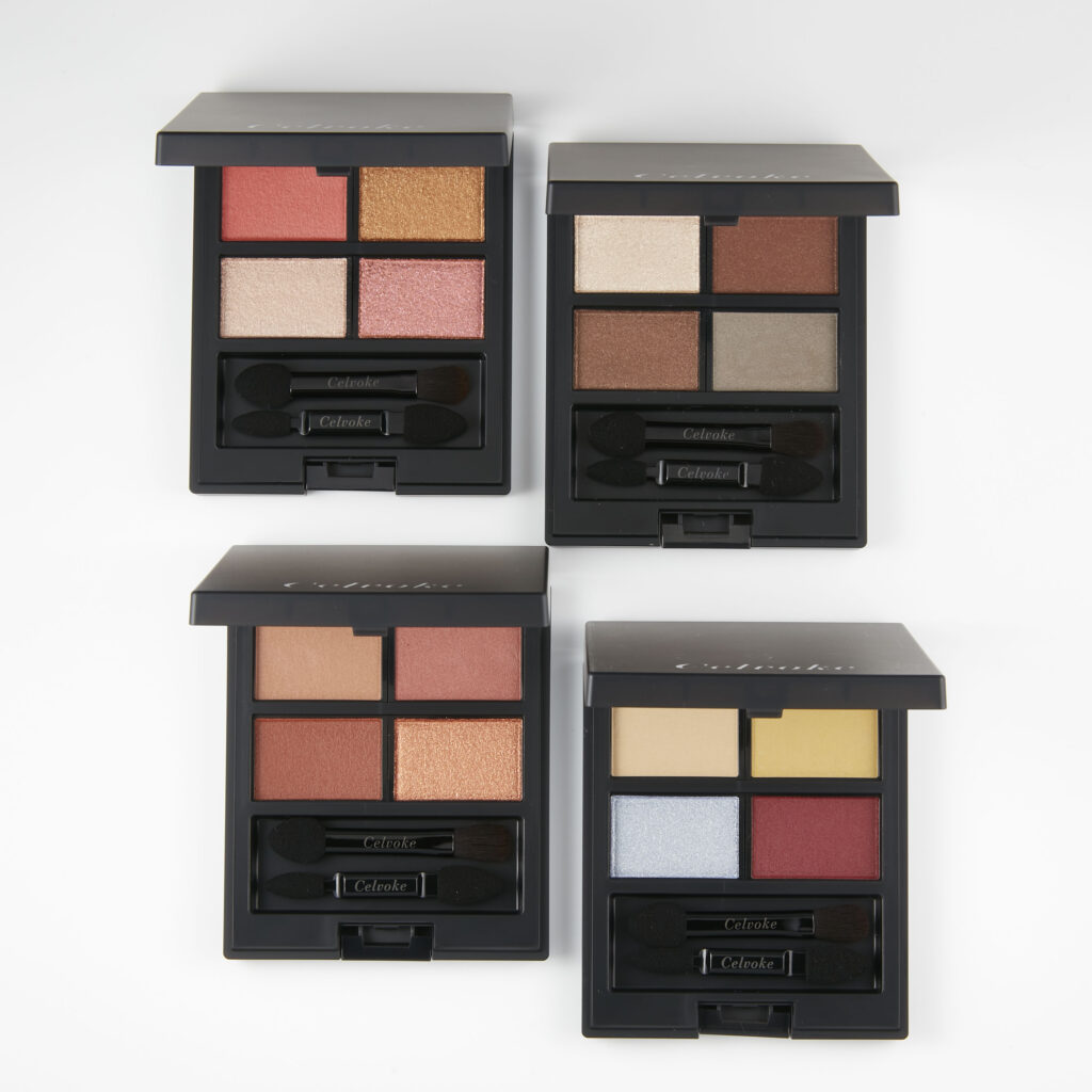 4色パレットには、メインカラー2色(パレット右上と左下)、印象を引き締めるディープカラー(パレット右下)、仕上げに輝きを加えることができるコートカラー(パレット左上)が配され、それぞれのカラーは、考え抜かれた最適な、異なるフォーミュラで提案され、組み合わせによりさまざまな表情や印象のメイクを楽しむことができます。