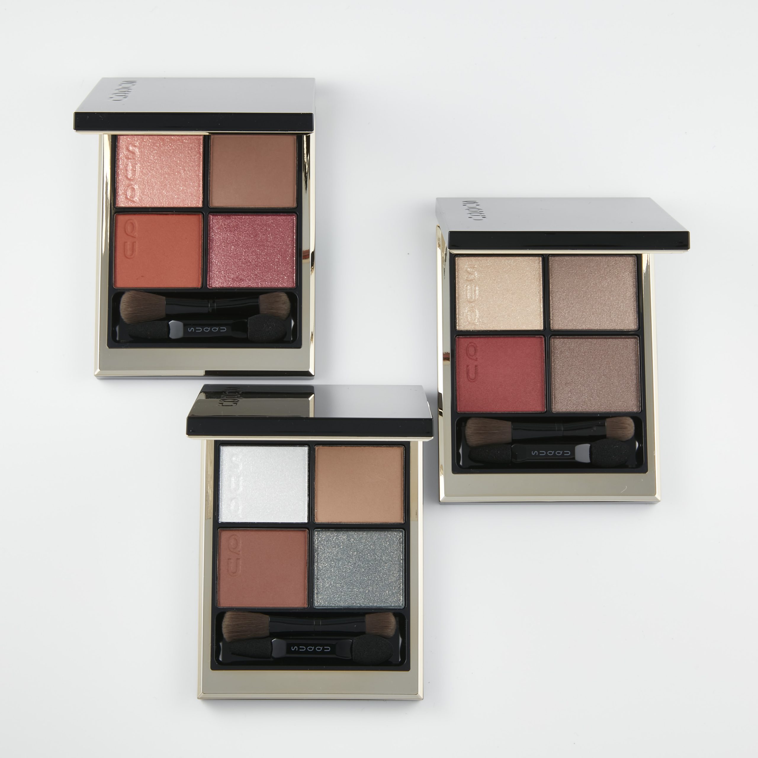 4色を重ねても色ムラになりにくく、ぴたっと密着する薄膜感で、ラメやパール落ちを防ぎ、まぶたと一体化するようなシームレスな美しさは、粉体を滑らかに広げる新技術と高純度な色の使用によるもの。クリアパールの贅沢な配合により、濃色でも透き通るような抜け感と洗練された透明感を叶え、乱反射するパールが生命感を感じさせる光沢を演出。さらに粉感を感じやすいマット質感の色には、オイルで包み込んだ球状のスノーパウダーを使用。しっとりと美しい感触となめらかなパウダーレスな質感を叶えます。