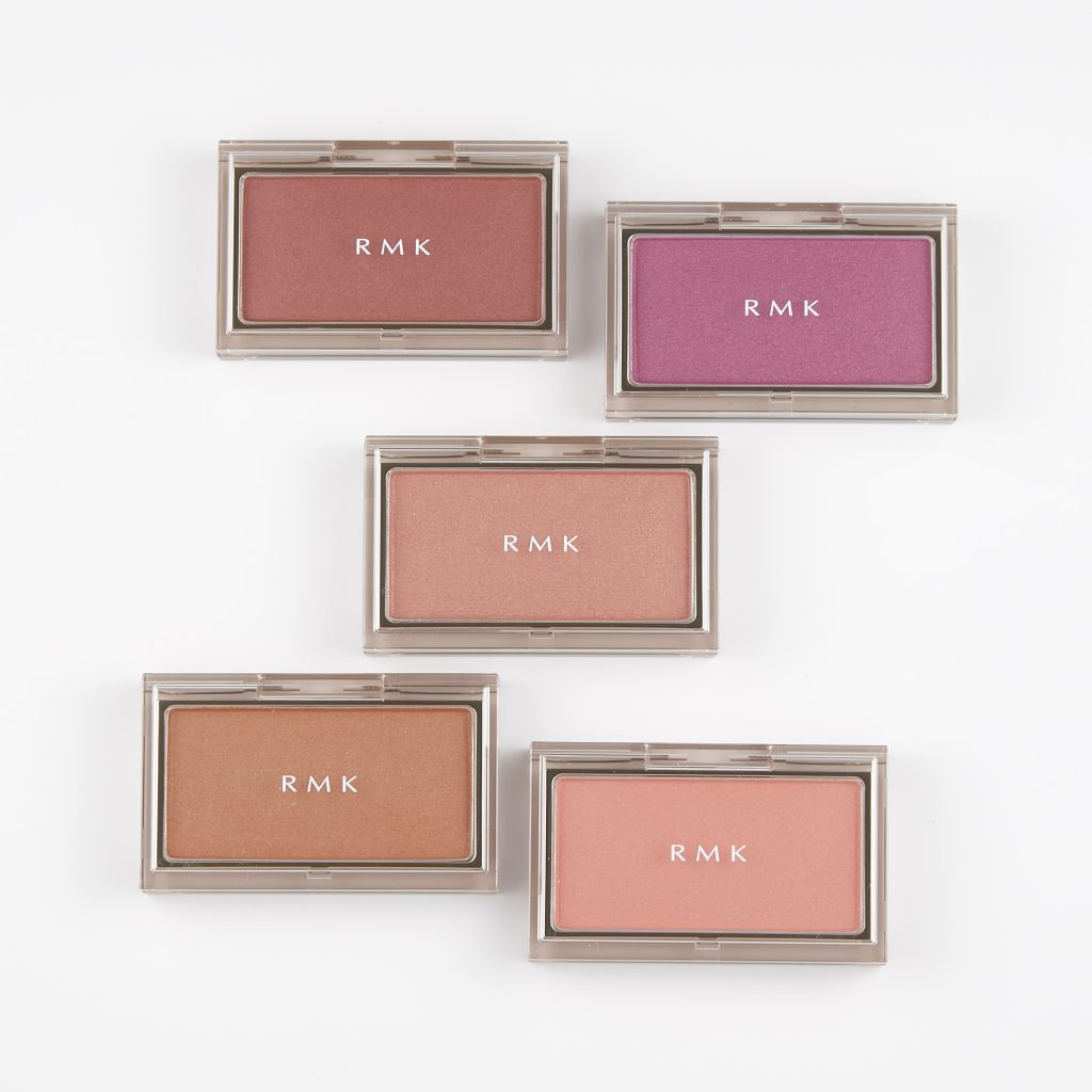 新チーク「RMK ピュア コンプレクション ブラッシュ」は、透明度の高いパウダーと微粒子パウダーでピュアな発色と肌そのものの光沢を引き出し、肌なじみの良いアミノ酸誘導体コーティングを施したピグメントが内側から色づくようなリアルな血色感を実現。さらに保湿効果の高いスクワランとペーストオイルを配合することで、パウダーでありながら、ヴェールのような薄膜で肌に溶け込むように一体化。肌にしっとりフィットし、美しい発色をキープします。