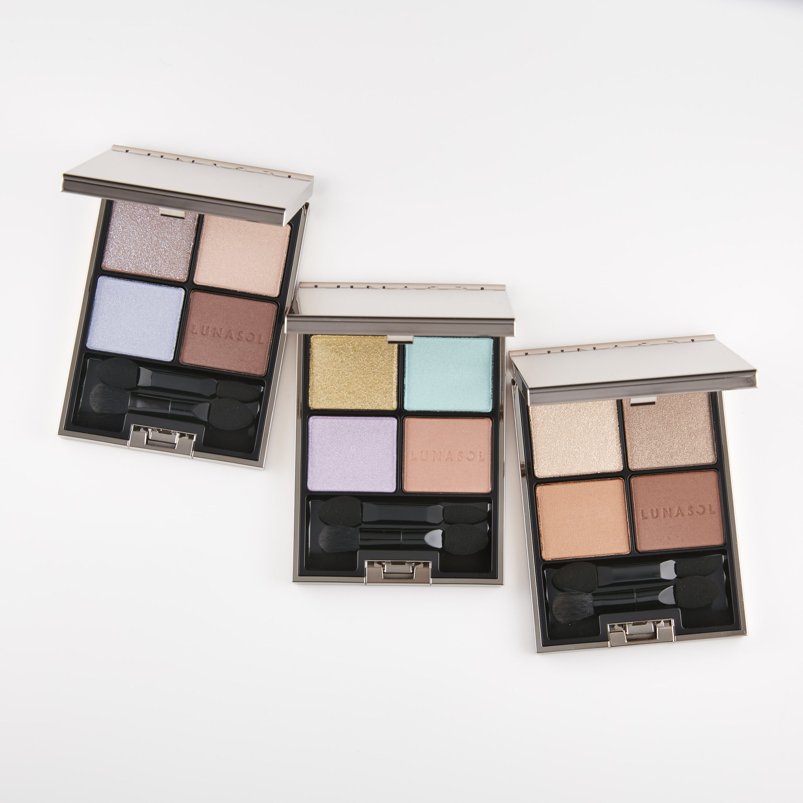 4色を重ねても色ムラになりにくく、ぴたっと密着する薄膜感で、ラメやパール落ちを防ぎ、まぶたと一体化するようなシームレスな美しさは、粉体を滑らかに広げる新技術と高純度な色の使用によるもの。クリアパールの贅沢な配合により、濃色でも透き通るような抜け感と洗練された透明感を叶え、乱反射するパールが生命感を感じさせる光沢を演出。さらに、マット質感のカラーには、オイルで包み込んだ球状のスノーパウダーを使用することで、しっとりと美しい感触となめらかなパウダーレスな質感を叶えます。
