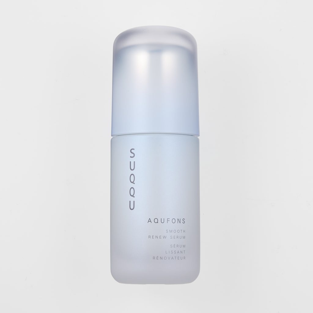 艶を大切にするSUQQUがエイジングケアラインAQUFONSで目指しているのは、角層を水分で満たし、肌表面を滑らかに整えることで光の反射量を高めた、肌本来の持つ“透明感あふれる艶”。その美しい艶を阻害する“肌の凹凸”に着目し誕生したのが、新美容液「アクフォンス スムース リニュー セラム」(医薬部外品)です。