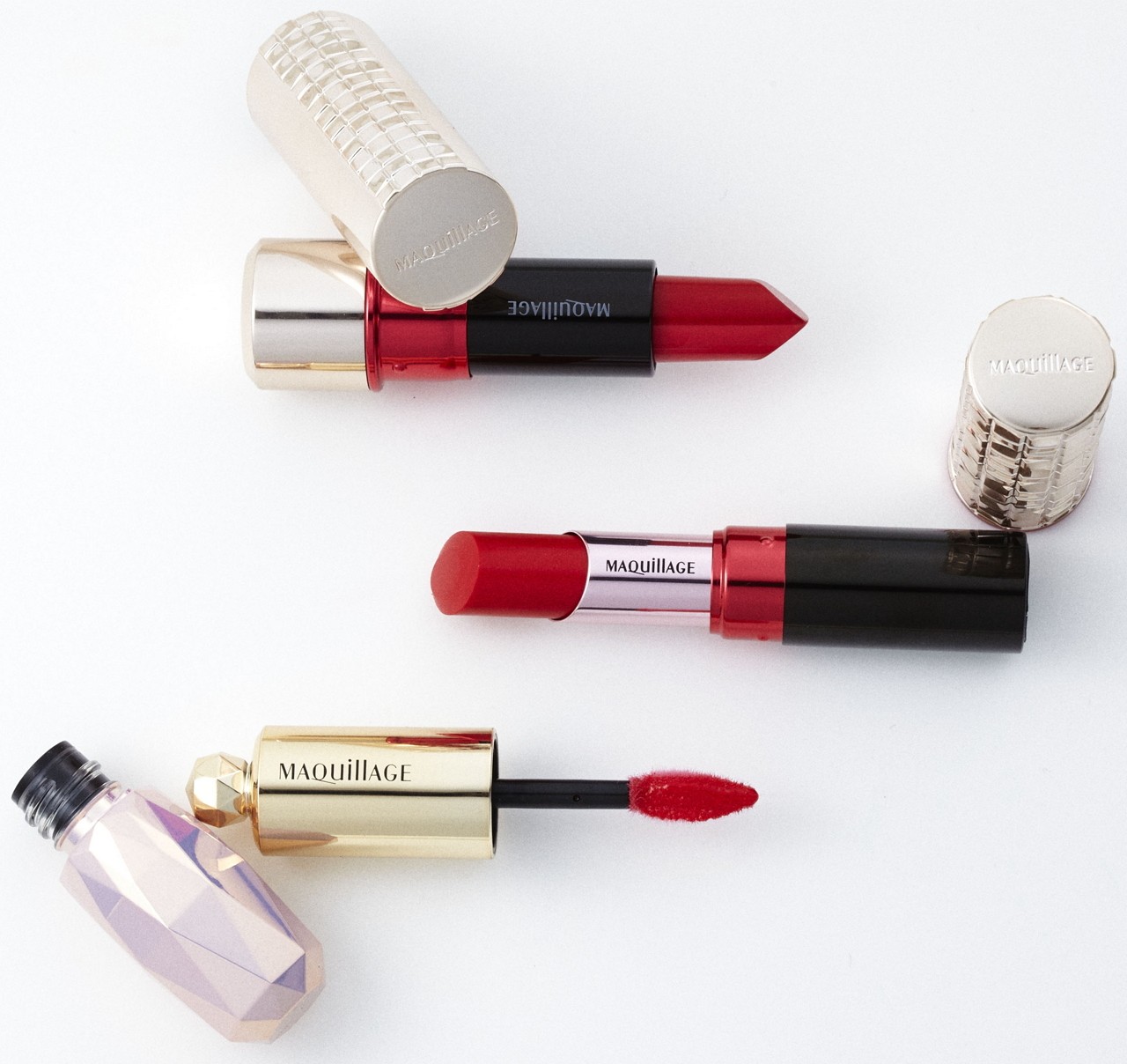 カワイイだけではなく、その先のワンランク上の女性を目指すマキアージュのレディたちに10周年を記念して贈られる “レディレッド”は、今季注目のほのかに色っぽい印象を高める新技術トリプルカラープロデュースを採用した新しい赤を提案。鮮やかな発色と、赤みに変換するパウダーの配合による自然な血色感と肌なじみの良さを可能にすることで、顔全体を明るくきれいに見せ、より美しく、誰もが似合う赤に仕上げています。