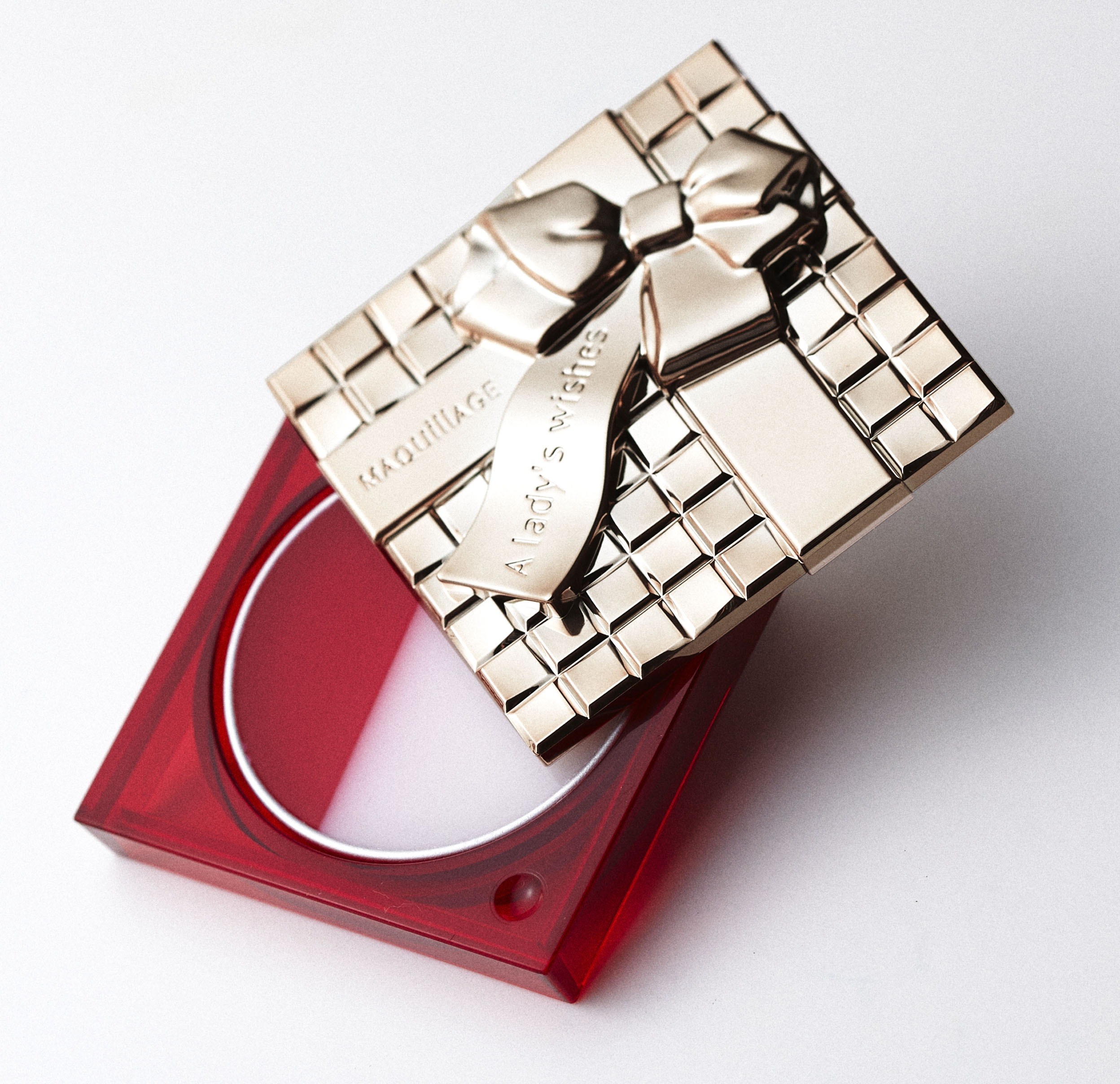10周年アニバーサリーらしいゴールドのリボンが施されたパッケージの蓋には、マキアージュからのメッセージが刻まれています。