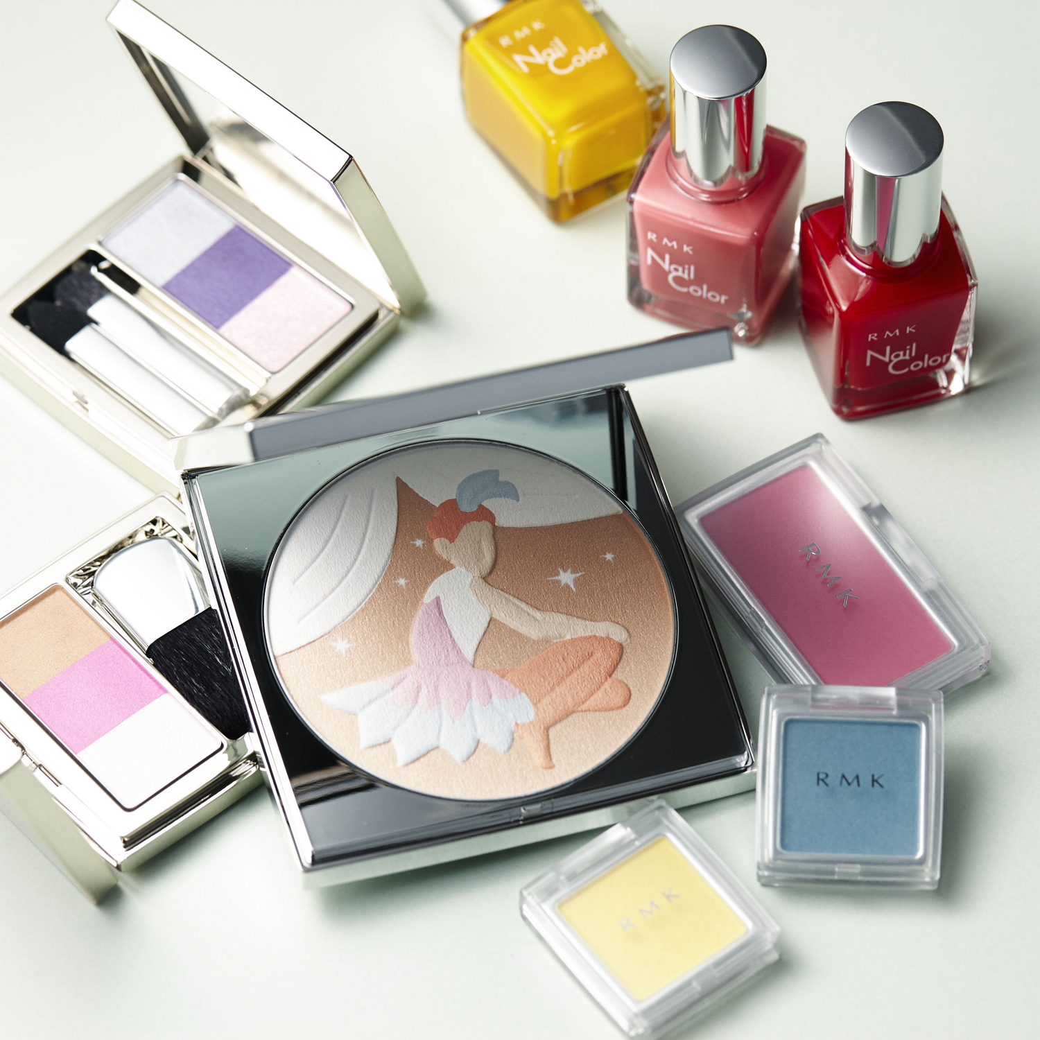 代表的なアイテムは、ホワイト、ピンク、ブルー、オレンジと背景のブロンザーカラーで、サーカスの花形のスターアクトレスをあしらった限定フェイスカラー「RMK スプリングサーカス フェイスカラー」。