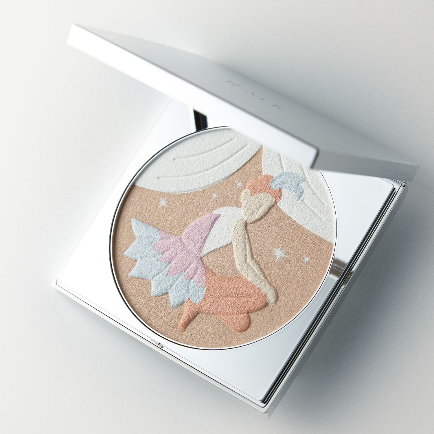 全体をひと刷けしブレンドすることで肌のトーンを均一に整え、色をのせ組み合わせることにより、なりたい肌印象の演出をサポート。余分な皮脂を吸収してくれるので、さらっとしたセミマットな仕上がりが楽しめます。
