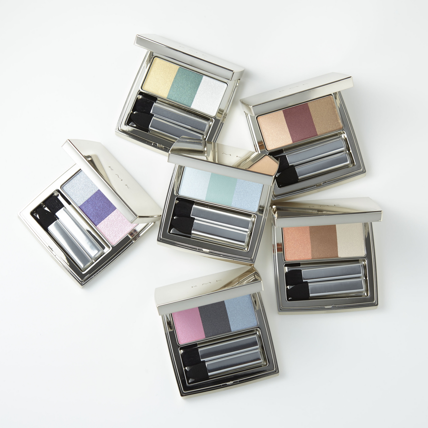 「RMK カラーパフォーマンスアイズ」は、センターのメインカラーに、輝きのラメを加えた2色を両側に配した3色セットのアイシャドウパレット。