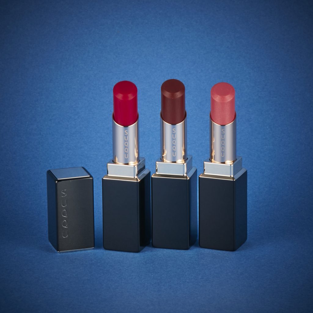 SUQQU「モイスチャー リッチ リップスティック」限定色3色 各5,000円(本体価格、2018年8月3日発売)