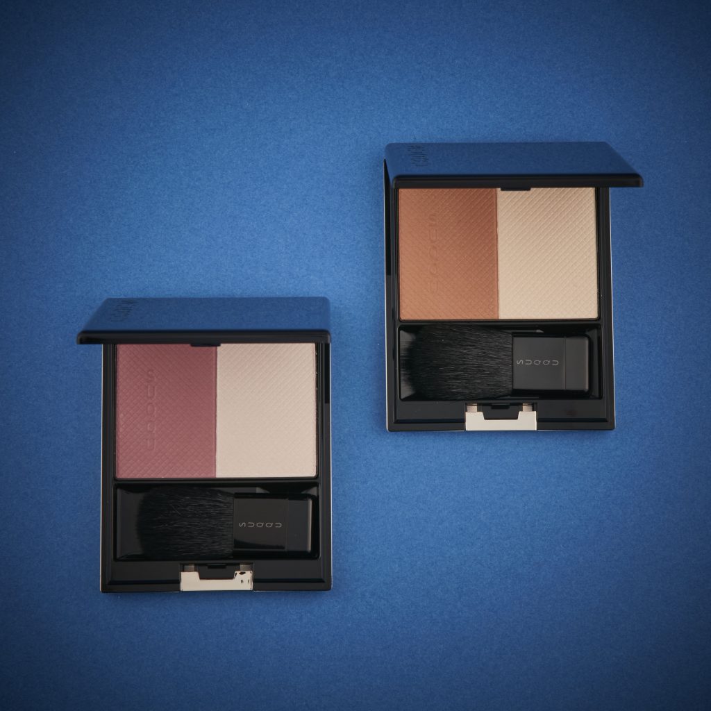 オールドローズの花弁のような深みのあるスモーキーローズとほのかに感じさせるピンキーローズのハイライトがほどよい血色感を演出する#108 艶薔薇 TSUYABARAと、木洩れ日のような繊細な輝きのブラウンとゴールドのハイライトが、クールな印象を演出しながら、頬にさりげない抜け感をもたらしてくれる#109 光茶 HIKARICHA。さりげなくもたらされる立体感からは、大人の余裕を感じさせられます。