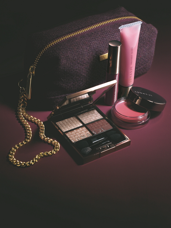 限定アイ&チークパレット、限定リップカラー、大人気のクレンジング オイルのミニサイズ、裏地までもがお洒落な限定ポーチの4点セット。