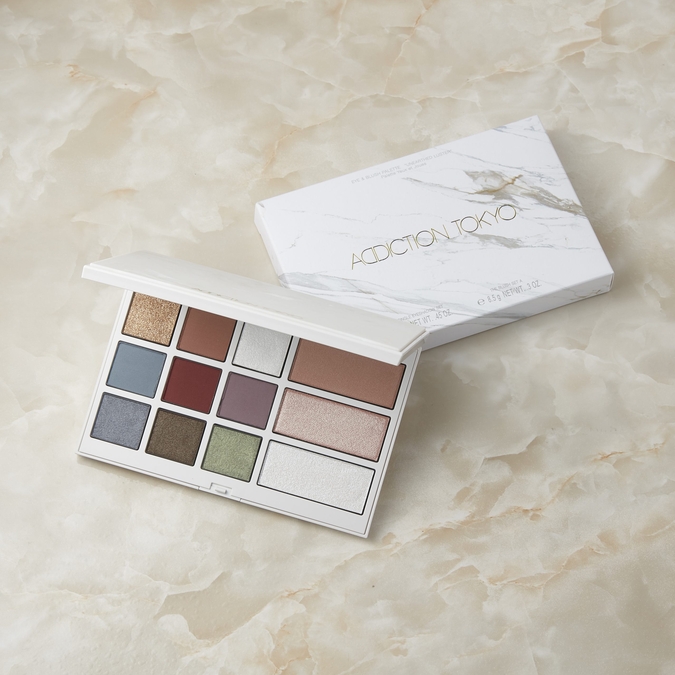 人気のカラーと今だけの限定色が同時に楽しめる、9色のアイシャドウと3色のブラッシュがセットされた「アイ&ブラッシュ パレット “アンアースド ラスター”」が、大理石を思わせるパッケージで登場!