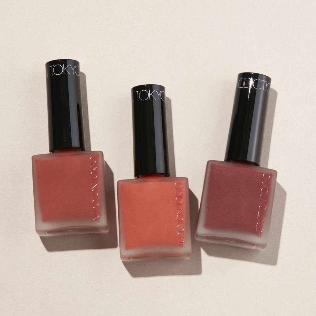 上段左から)インドの大地をイメージしたブラウン#166 Acidic Red (パール)、サフランカラーのマットレッド#167 Dark Saffron (マット)、繊細なパールが輝くレッドブラウン#168 Laterite (パール)