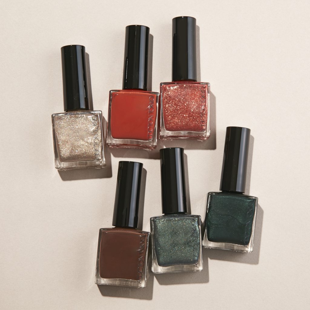 下段左から)輝きのブリックブラウン#163 Brick、寺院に眠る秘宝をイメージしたシャンパンベージュ#164 Vimana、神秘の森に差し込む光を思わせるグリーンゴールド#165 Sacred Grove