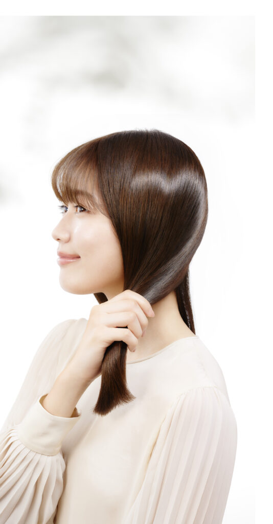 着目したのは、“髪のキメ”。美しい肌を叶えるために欠かせない、肌表面を整える“肌のキメ”のように、髪全体の毛流れを整え、髪の表面を整えた状態にするという新発想。