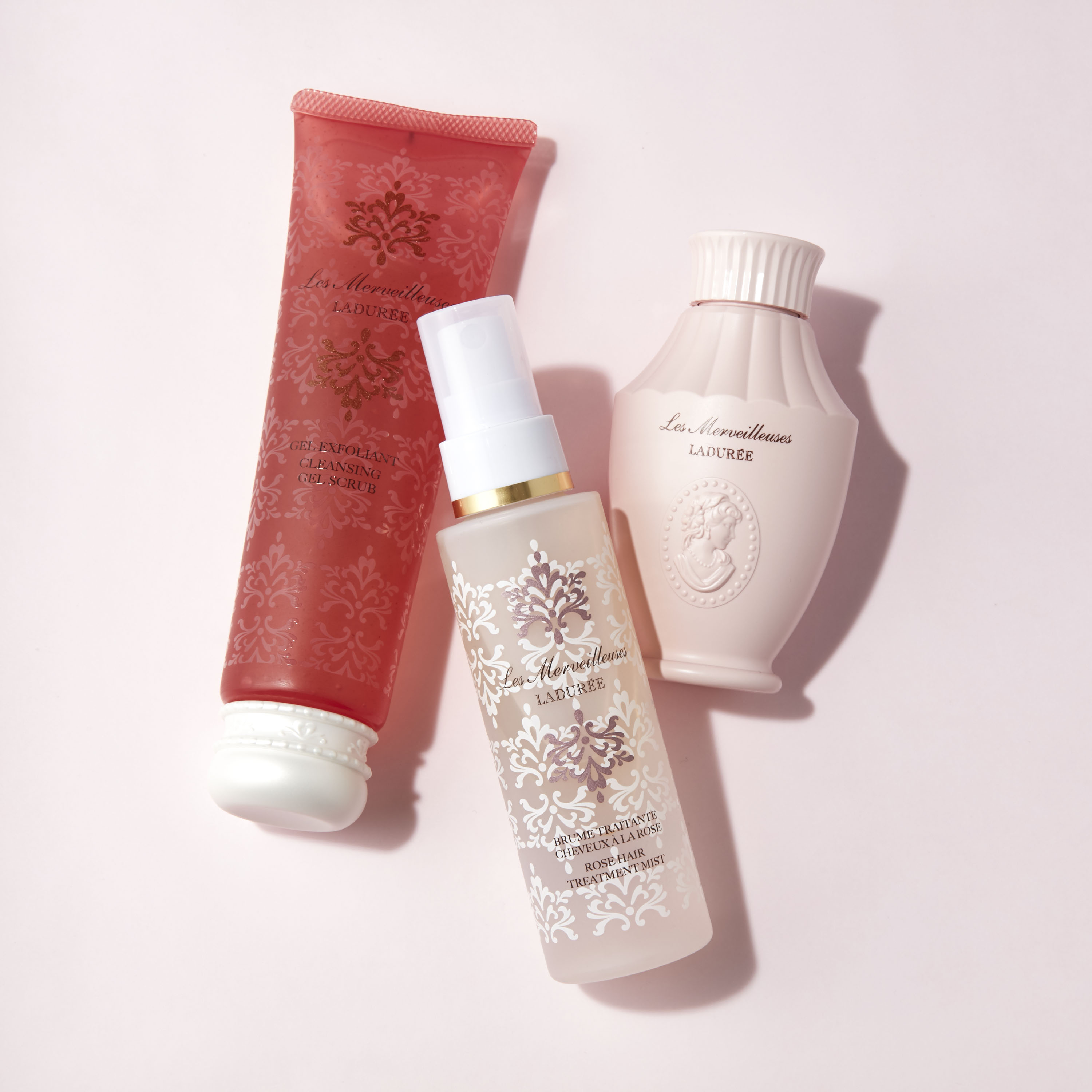 レ・メルヴェイユーズ ラデュレ「クレンジング ジェル スクラブ」「ローズ ヘア トリートメント ミスト」