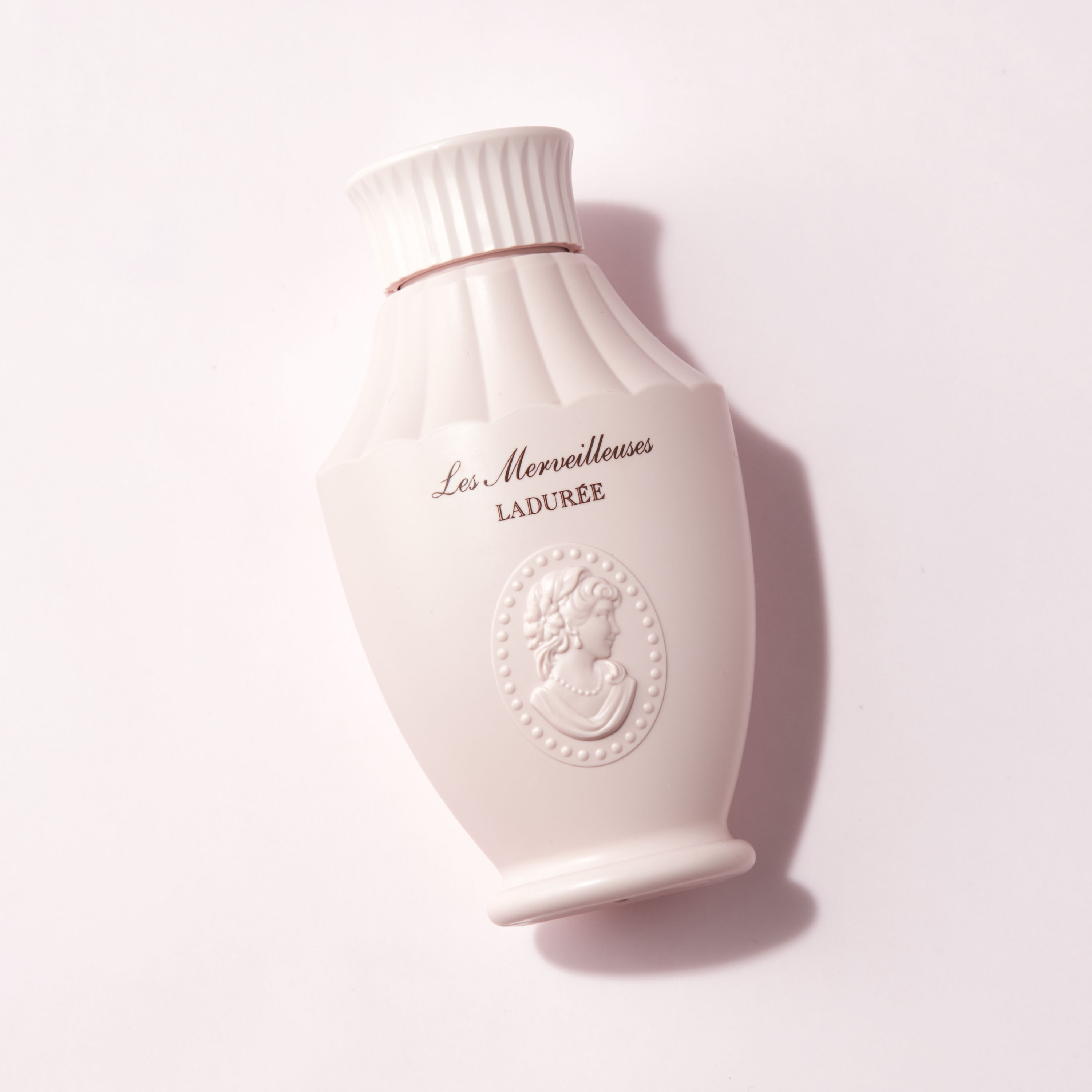 遊び心あふれるシャボン玉スティック付のボトルデザインも、レ・メルヴェイユーズ ラデュレならではの提案。優雅な時間を楽しむ・・・それこそが旅の心意気です。