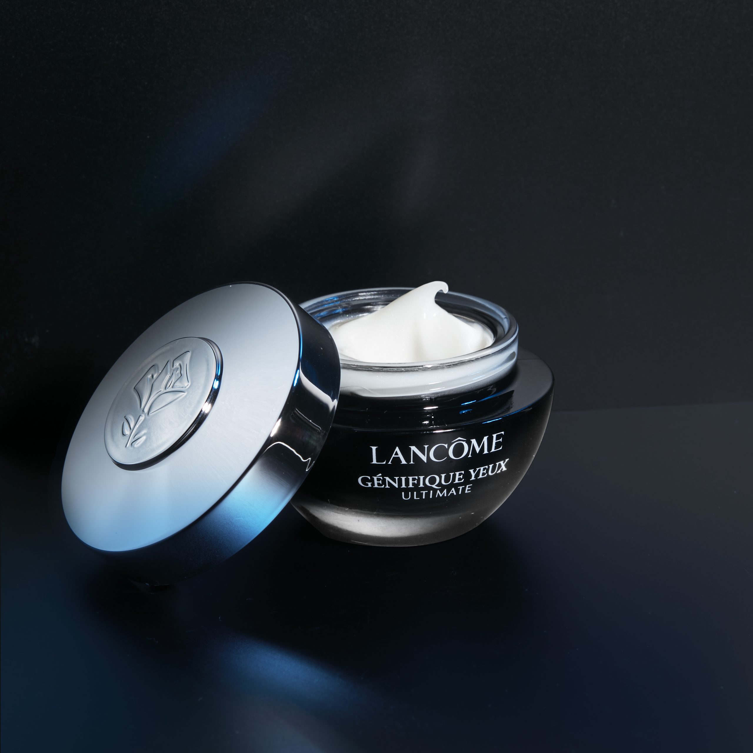 また今回はパッケージデザインも、「ジェニフィック アルティメ セラム」にインスパイアされ、一新。タイムレスなシルバー&ブラックのカラーコード、光を反射し輝くガラスのグラデーションカラー、丸みを帯びたシルエットは、スタイリッシュに共通採用。また“ランコムローズ”を刻印したラグジュアリーなフタで封印されるガラス容器は20%リサイクル可能で、クリームを取り出しやすいように広口瓶タイプを採用。日々のアイケアタイムにも、先進の科学に基づく信頼と機能的でスタイリッシュなエレガンスを楽しむことができます。
