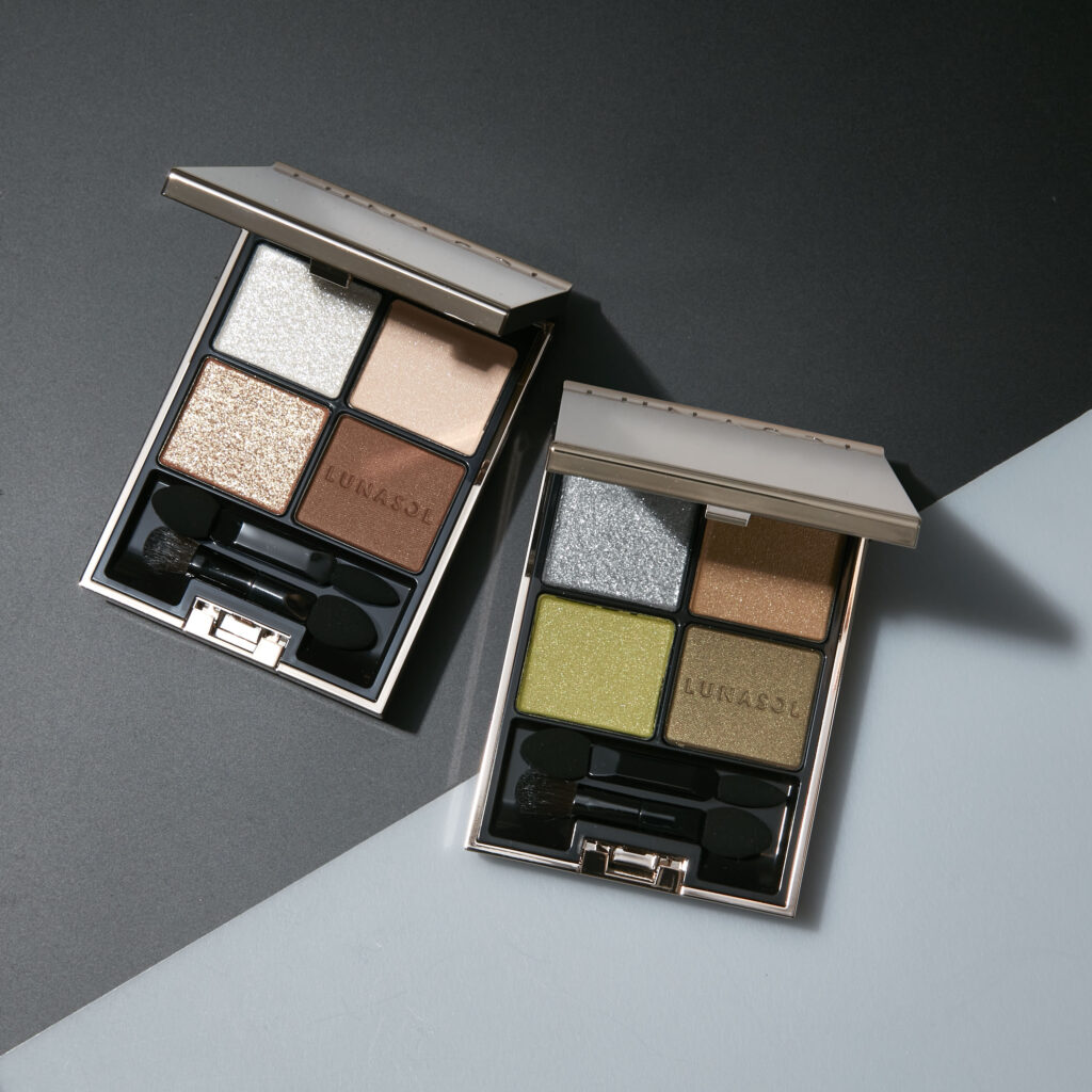 人気の4色セットのアイシャドウ「アイカラーレーション」からは、ルナソルのアイシャドウ初の大粒の高輝度パール配合の、こぼれるような光のまばゆい煌めきを放つ、限定2種が登場。