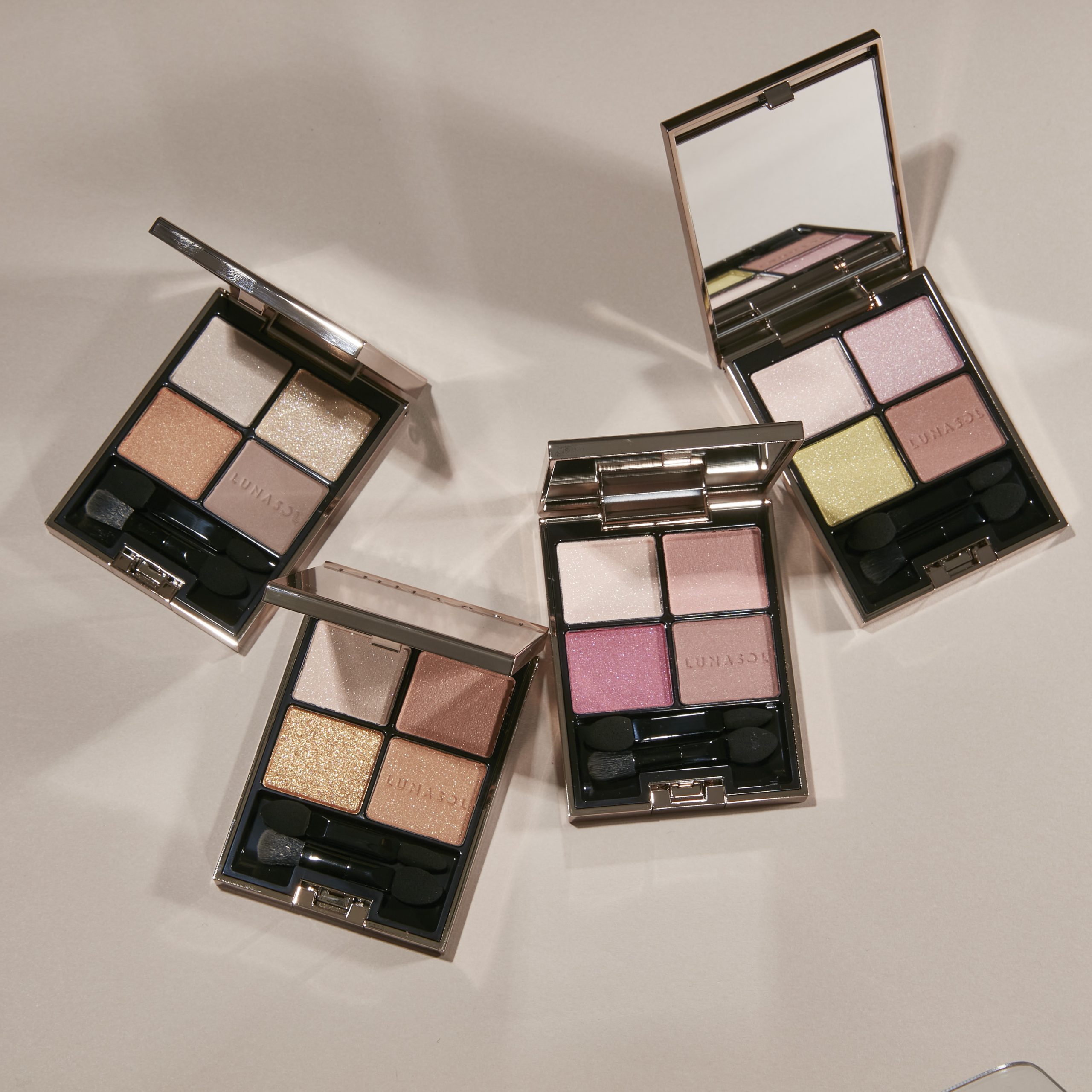 ■ルナソルを代表する4色アイシャドウパレット「アイカラーレーション」からは、それぞれ異なる色の繊細なカラーパールを配した色設計により、重ねるほどに印象的に個性が目覚める、春色の新4種(うち限定1種)が登場。