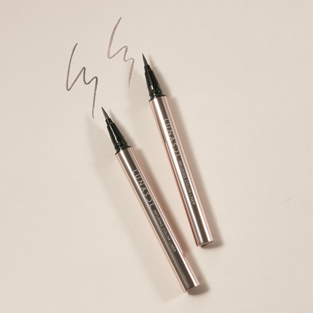 ■しなやかでコシのあるシャープな筆先により繊細なラインを自在に描けると人気のリクイドアイライナー「インフュージングカラーライナー」からは、透明感のある影色でまなざしに存在感をもたせる、限定2色がラインナップ。