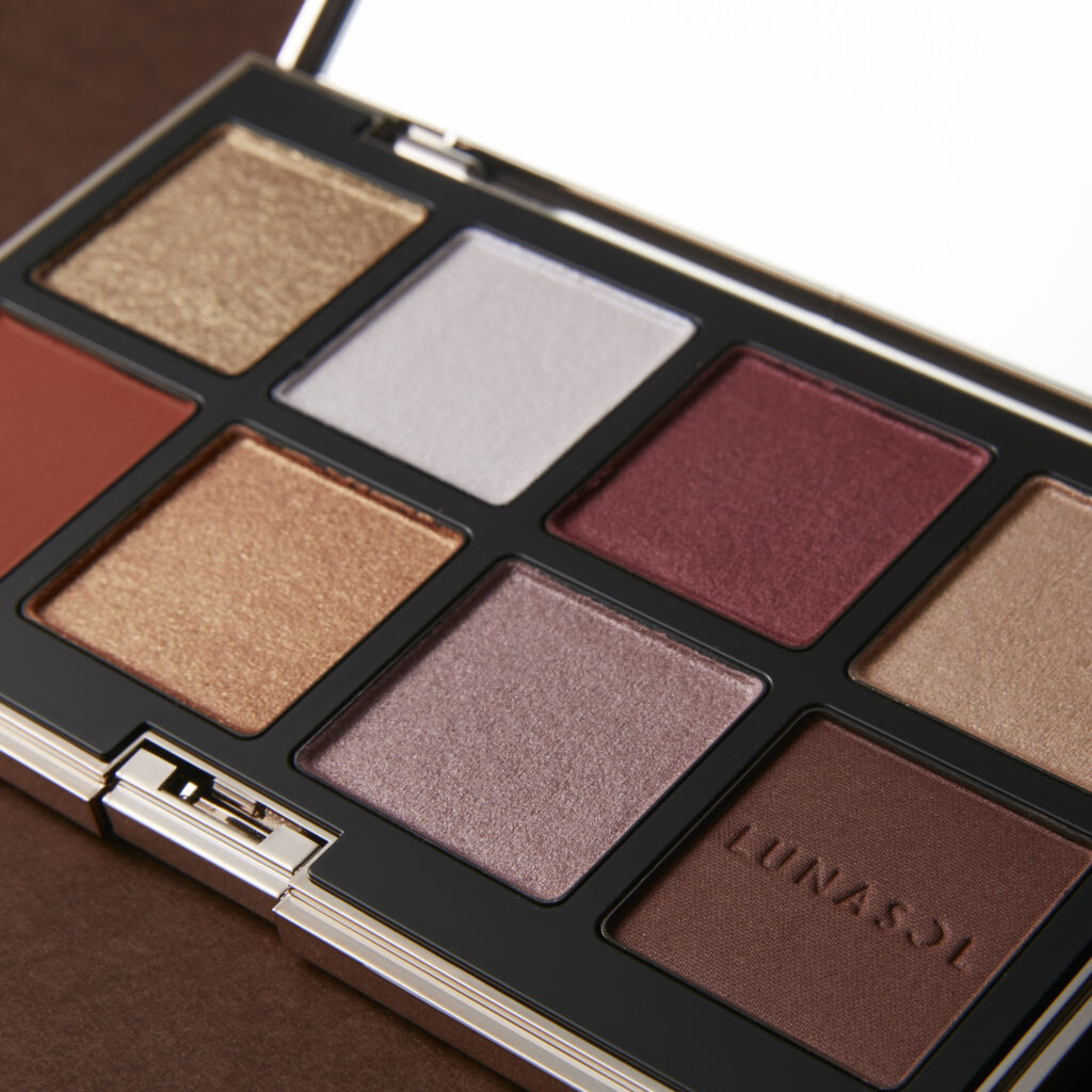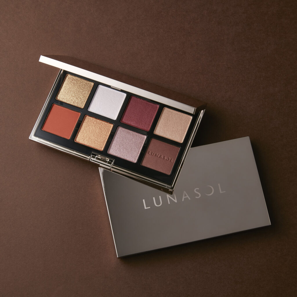パッケージ表面のセンターにルナソルのロゴが記されたパレットには、パール、クリーム、マット等異なる質感で揃えた、ホリデーシーズンだけの特別な8色が厳選ラインナップ。