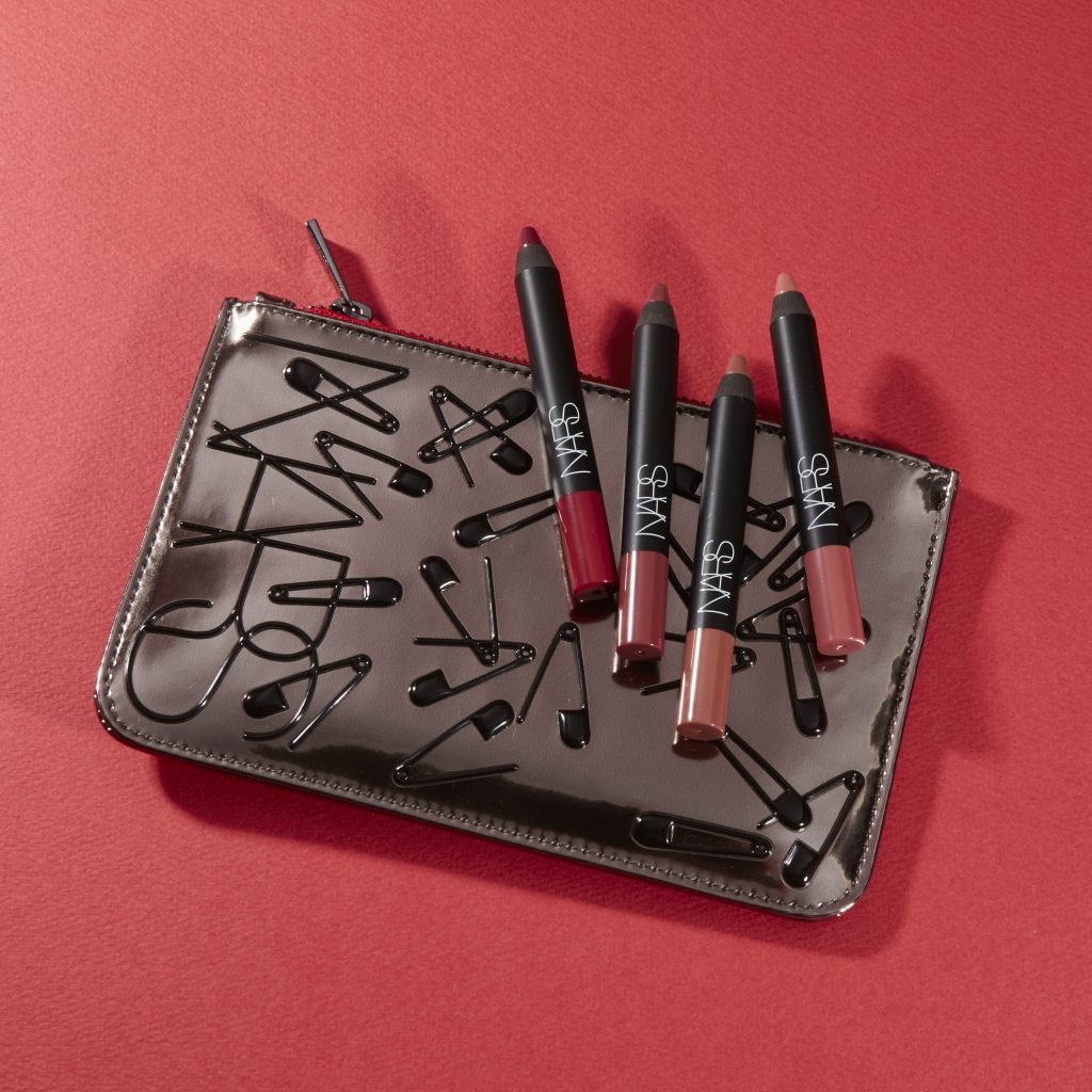 お洒落上級者にこそふさわしいのが、スタッズ仕様のパッケージにセットされた新・限定6色の「ホットトライスト チークパレット」。チーク、コントゥアー、ハイライトに使用しながら、シックに仕上げることができます。また、ファーストNARSの初心者から楽しめるのが、スタッズ仕様のスペシャルボックスにミニサイズの2メイクアイテムをセットした「リトルフェティッシュ」シリーズの4タイプ。メイクマニアにもぴったりなのが、パンキッシュなピンのデザインポーチに、「ベルベットマットリップペンシル」の限定4色がセットされた「ベルベットマットリップペンシルセット」シリーズの3タイプ等、誰にどれをあげようかと、悩むのもホリデーシーズンの楽しみのひとつになりそうです。
