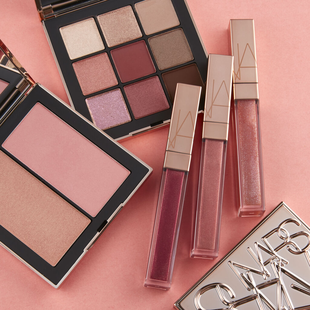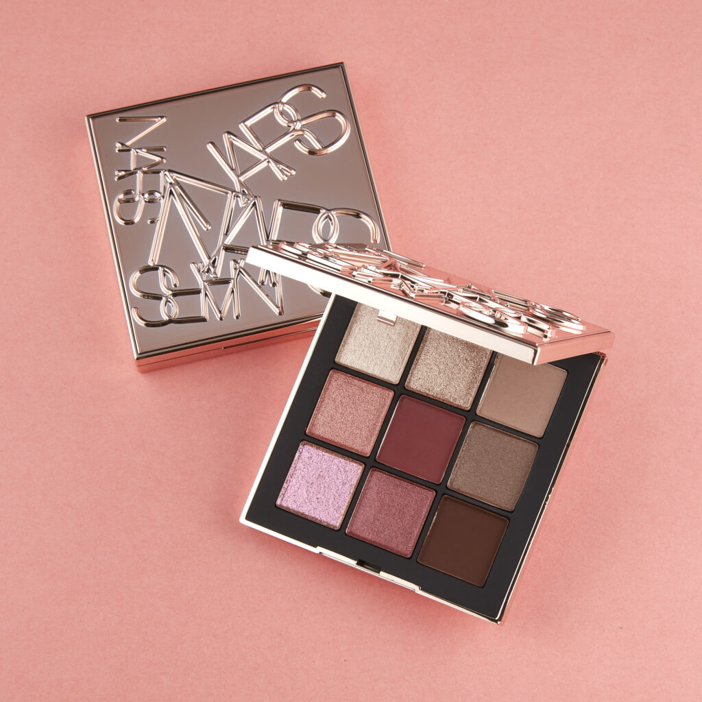 目を惹くNARSのロゴを散りばめた淡いゴールドピンクの限定パッケージで登場するのは、贅沢なBIGサイズの9色入りのアイパレットと2色セットのチークパレット。そして限定パッケージと共通の淡いゴールドピンクのキャップにピンクのNARSのロゴを配したリップグロス。