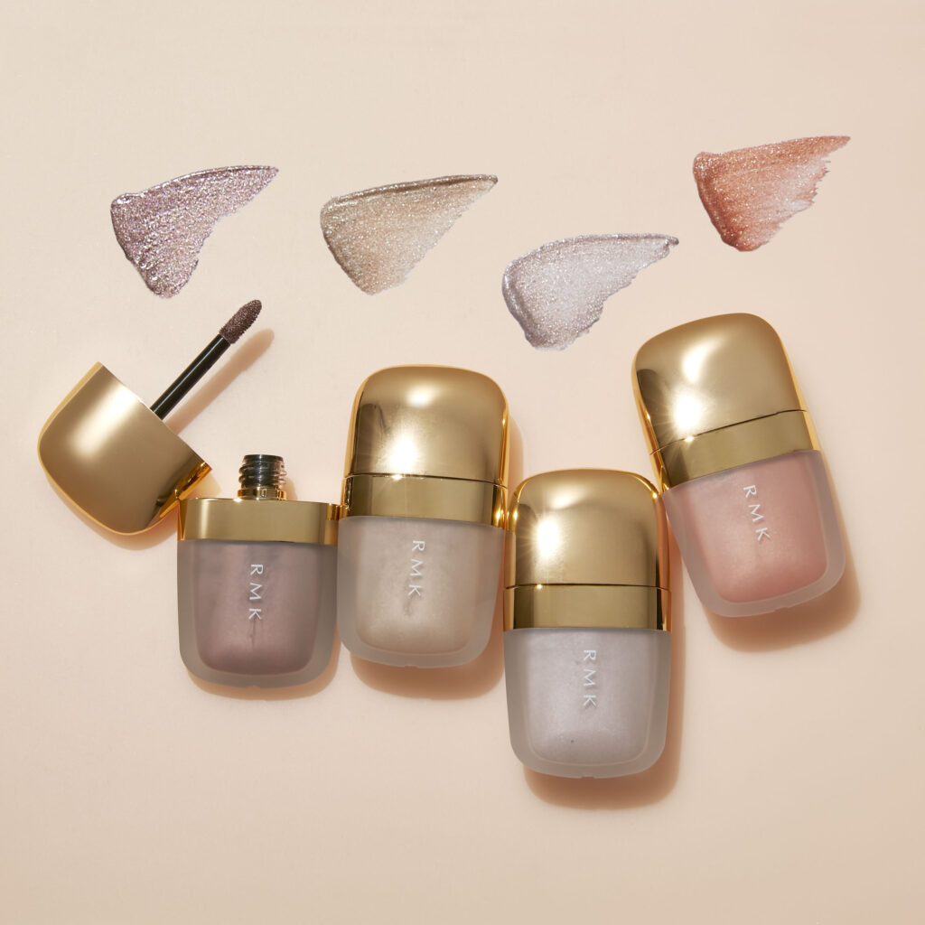 まぶたに伸ばすと密着し、パウダーのようにさらりと変化。骨格に沿ってラフに伸ばせば、メタリックやシャイニーにきらめくパールが立体感や奥行きを演出してくれます。「RMK ローズウッドデイドリーム 4アイズ」と組み合わせれば、深みをプラスし、よりエモーショナルな目もとに。また色を隠すことなく密着感をアップさせるので、パウダーアイシャドウのベースや上から色を重ねても使用でき、やわらかな色と輝きのレイヤリングを楽しむことができます。