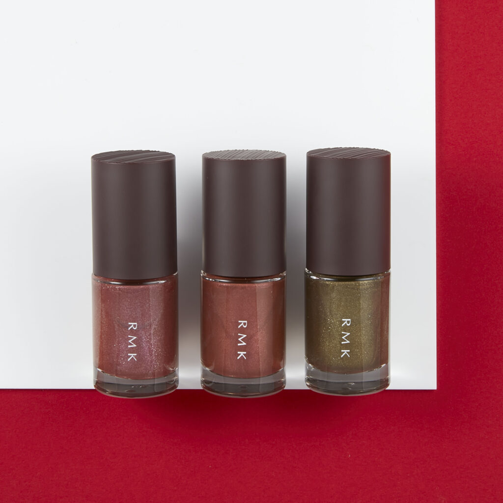 ■■つけたての美しい発色となめらかで上品なツヤ感が人気の「RMK ネイルラッカー」からは、繊細な色と煌めきを纏った新限定3色が登場。