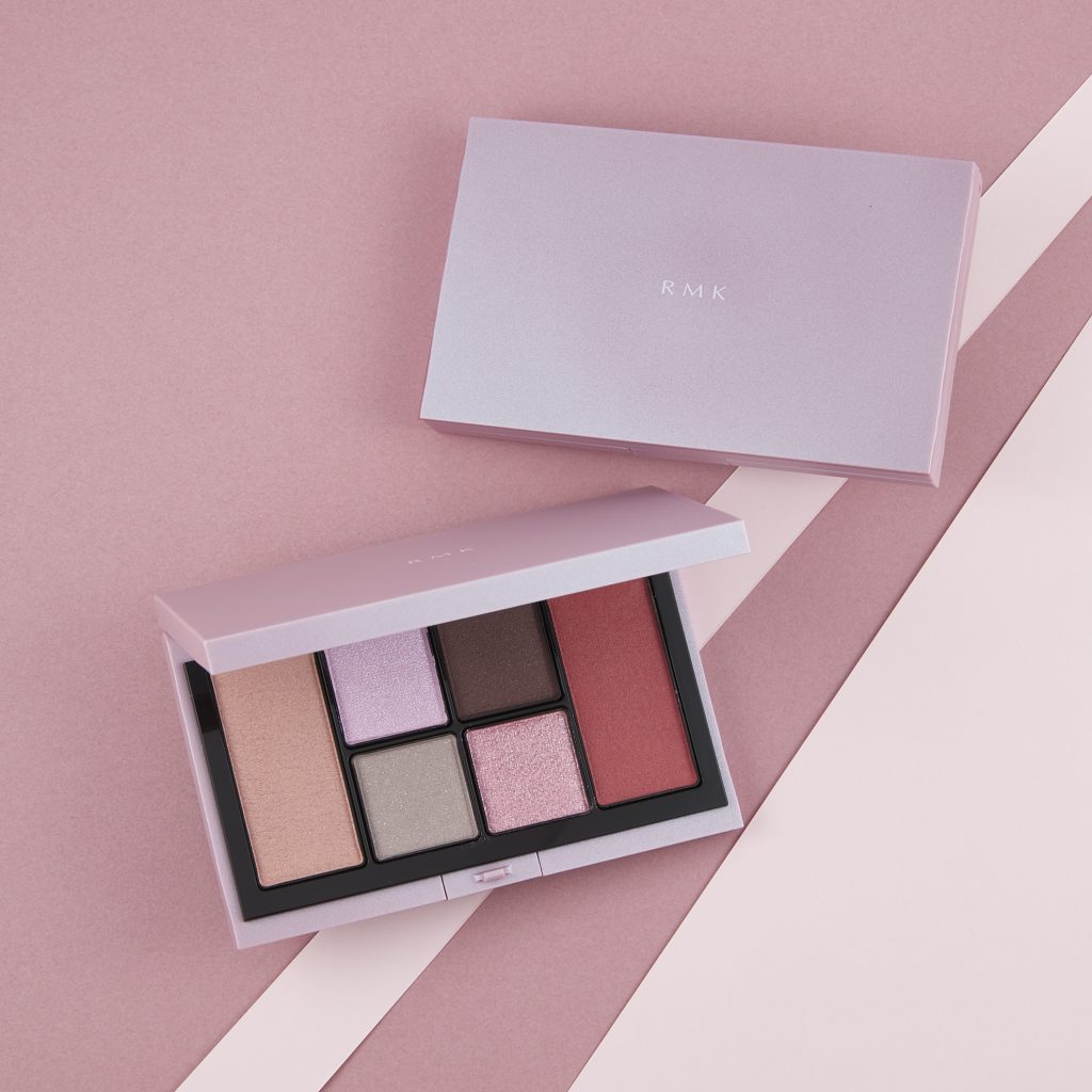 ホリデーの高揚感とモダンなムードの両方を叶える「RMK ザ ピンク ハイ アイズ&ブラッシュ パレット」は、中央に4色アイシャドウ、左にハイライター、右にブラッシュがセットされた今ホリデーの特別なパレット。