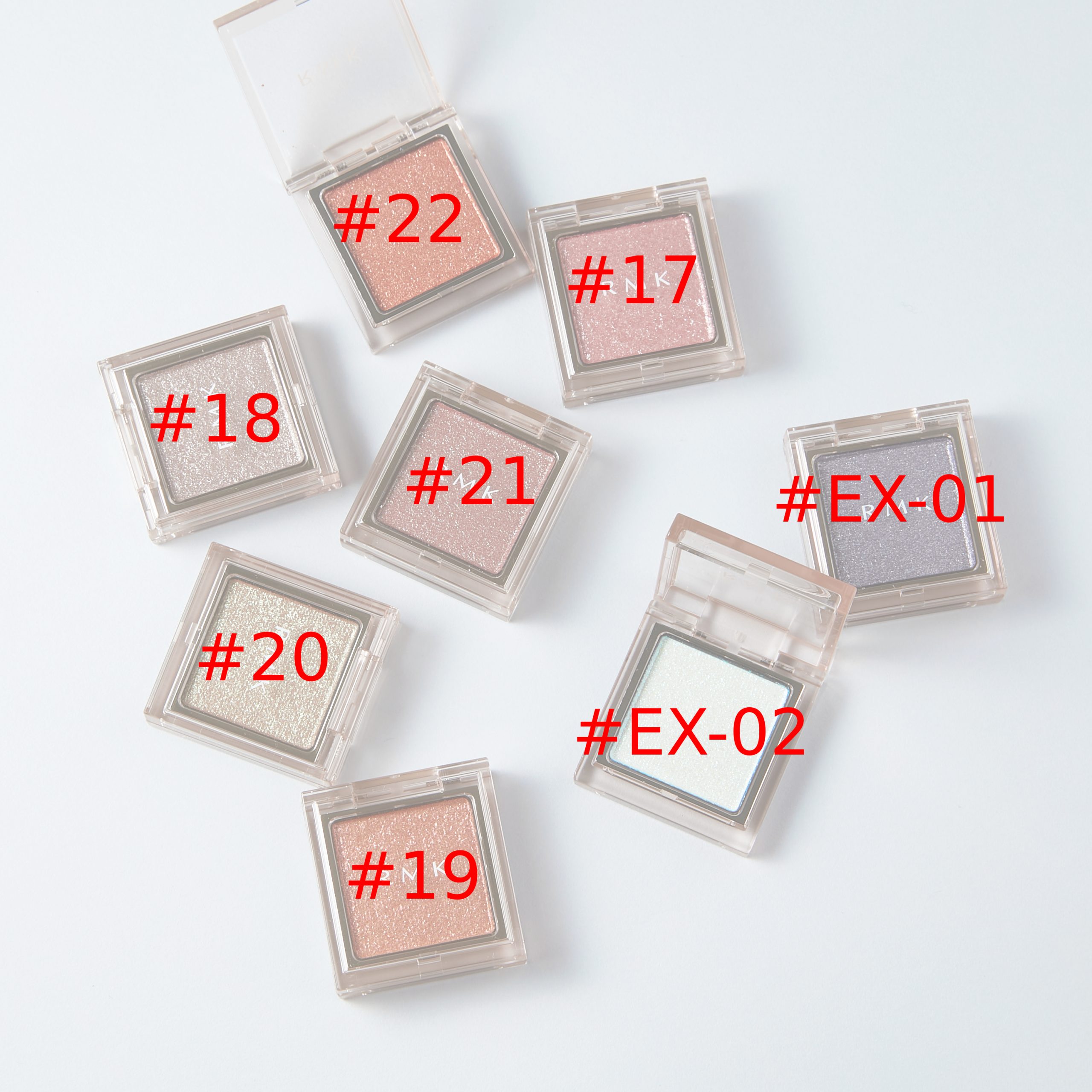 しっとり感と透明感をあわせもつクリアゲルをRMKで初めて採用することで、まぶたを立体的に見せるクリアな輝きを叶え、贅沢に配合した輝度の高い大粒パールが角度により異なる多面的な輝きを実現することで、単色でもメイクの可能性と表現を広げ、楽しませてくれると、期待の新質感。他の色に重ねるトッパーとしても楽しめます。