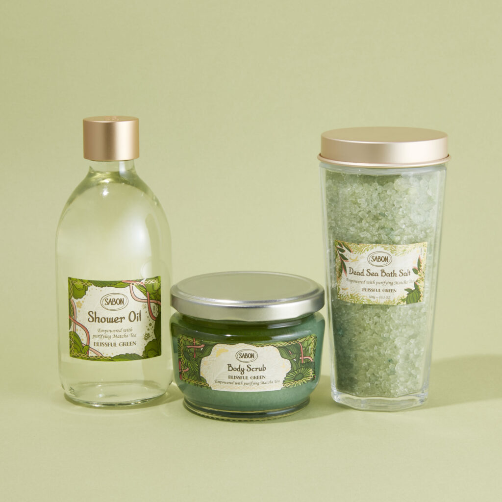 抹茶の持つ魅力で、心穏やかな癒しの時間を得ることのできる“Blissful Green Limited Collection”は、まもなく訪れる母の日はもちろん、日頃の感謝の気持ちを込めたプレゼントにもピッタリ。SABONでもコレクションのアイテムをセットにしたスペシャルなギフトキットを揃えていますので、ぜひ、チェックしてみてください。