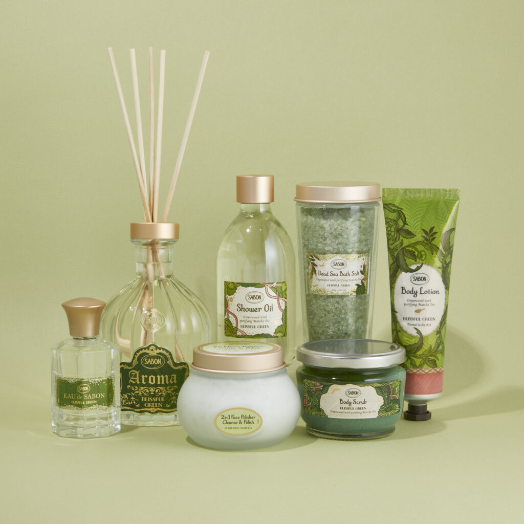 心までも浄化させられると注目される日本の茶道や抹茶そのものの魅力にインスピレーションを得た“Blissful Green Limited Collection”は、自然の息吹と生命力、自然が与えてくれる喜びに感謝するSABONの理念を体現することができる期間限定コレクション。