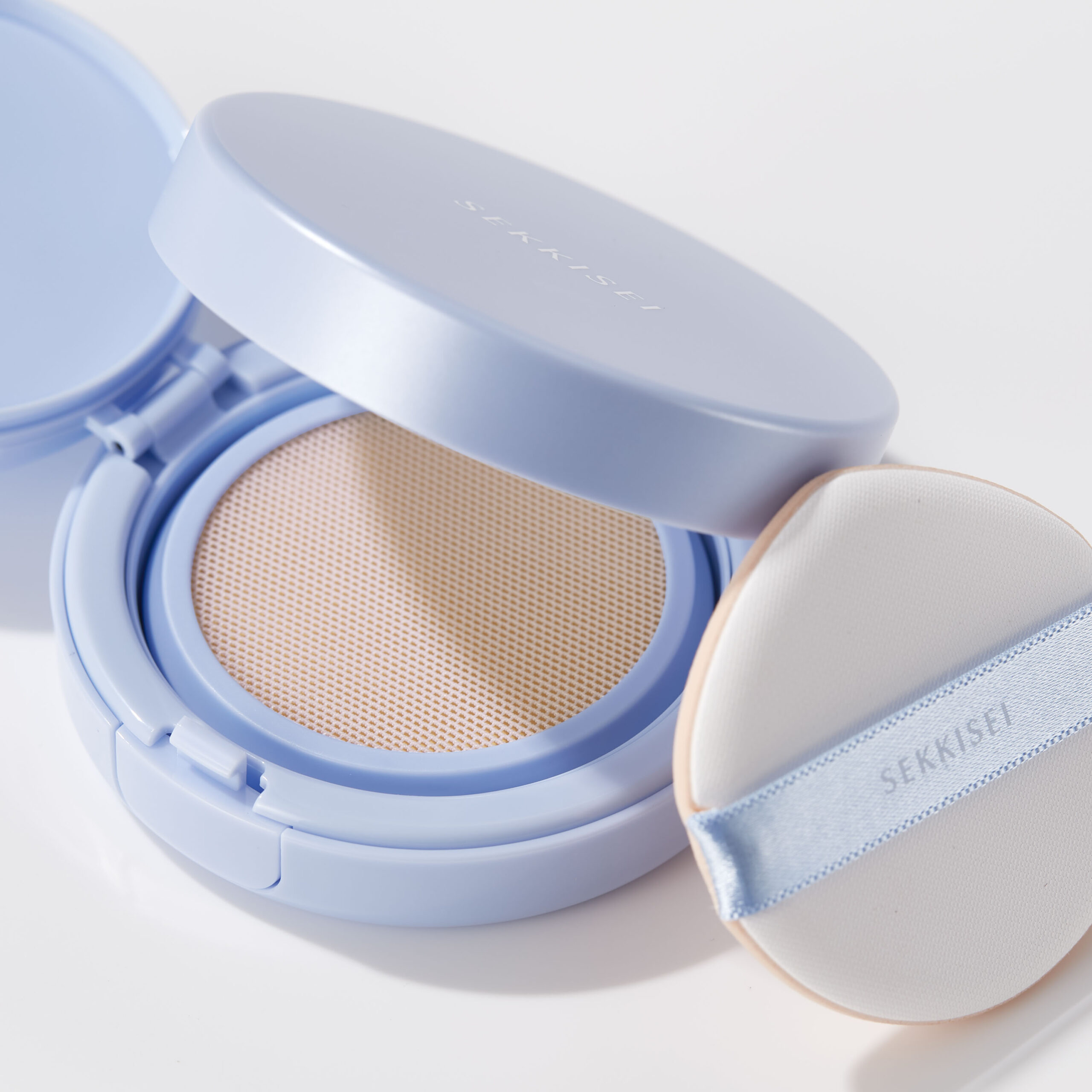 またパクトのメッシュ構造を通し適量の乳液をパフに取ることができるため、いつでもどこでも手を汚さず、自然な仕上がりを簡単に叶え、さらに余分な皮脂を吸い取る皮脂吸着成分と毛穴や色むらをカバーするパウダーの配合により、さらりとした透明感あふれる素肌を演出します。