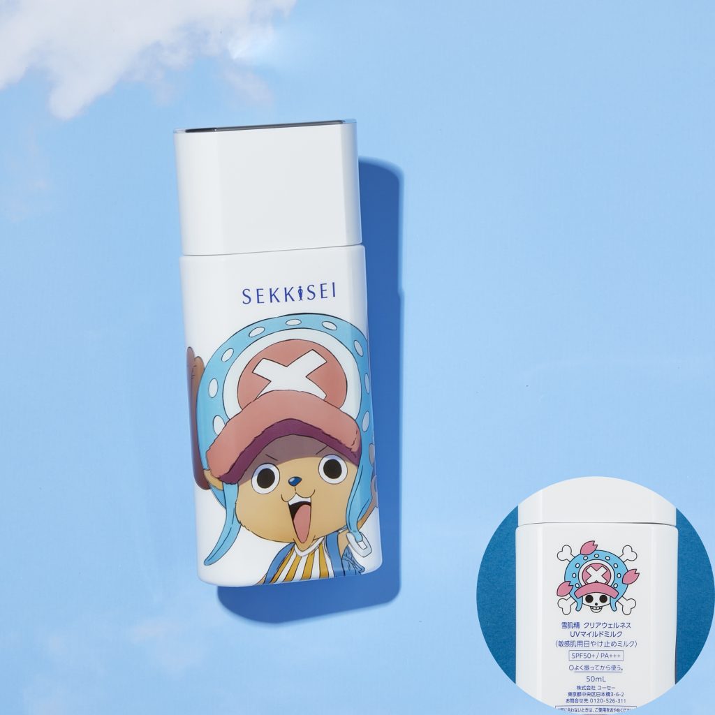 ●ヒトヒトの実を食べて人間の能力を得た青っ鼻のトナカイで、恩人Dr.ヒルルクの遺志を継ぎ医者を志す“麦わらの一味”の船医トニートニー・チョッパー、通称:わたあめ大好き チョッパーが登場しているのは…、雪肌精 「雪肌精 クリアウェルネス UVマイルドミルク」(ワンピース限定デザイン)