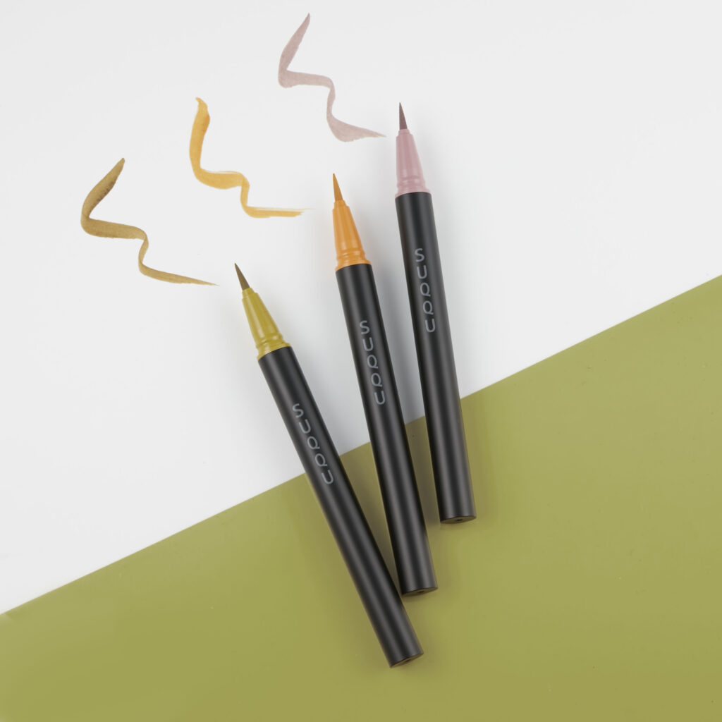 強弱がつけやすく、くっきりとしたラインも繊細なラインも自在に描けるフェルト筆タイプの「ニュアンス アイライナー」に、加わった秋らしい色合いの限定3色。どこか憂いを帯びた眼差しに。