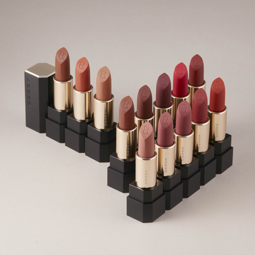 この秋デビューの新「シアー マット リップスティック」は、色や質感の新しさに加え、リップの形状やパッケージでもSUQQUらしさを追求。
