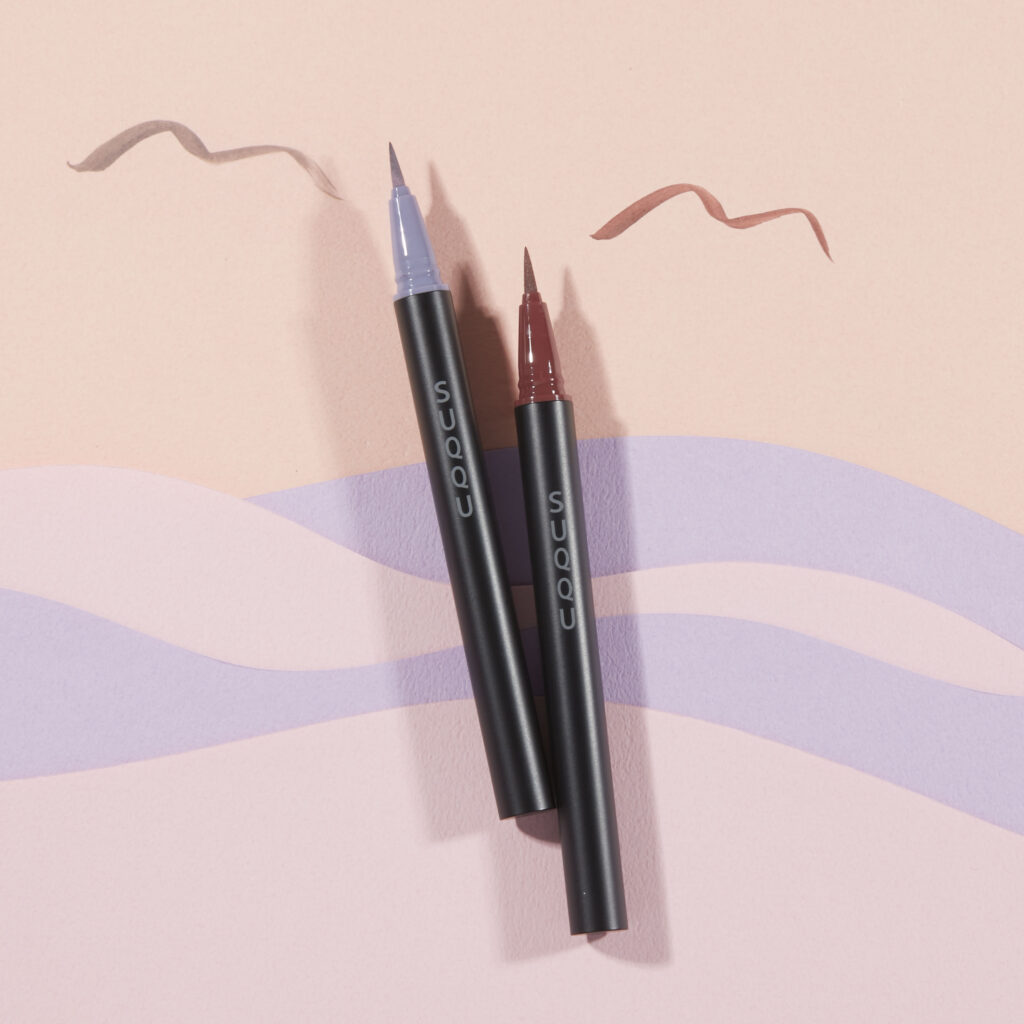 今春のデビュー以来、コシのあるフェルト筆の描きやすさが人気のリキッドアイライナー「ニュアンス アイライナー」からも、暖色系のアイシャドウをクールに引き締めるブルーグレー#103 ダブグレー(限定)と、抜け感と温かみを加えながらソフトに引き締める赤みブラウン#102 レディッシュブラウン(限定)の、夏のニュアンスカラー2色が限定で登場。