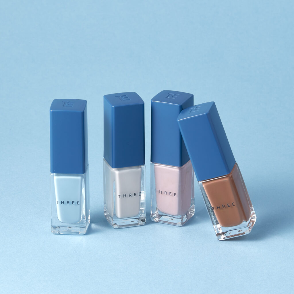 塗りやすさと、乾きやすさを兼ね備え、爪に優しい酸素透過性処方やトルエン、ホルマリン、フタル酸の3つのフリー、5種の植物オイル配合等、成分の厳選にこだわるTHREE独自のオリジナル処方が人気の「ネイルポリッシュ」からも、新限定4色が登場。
