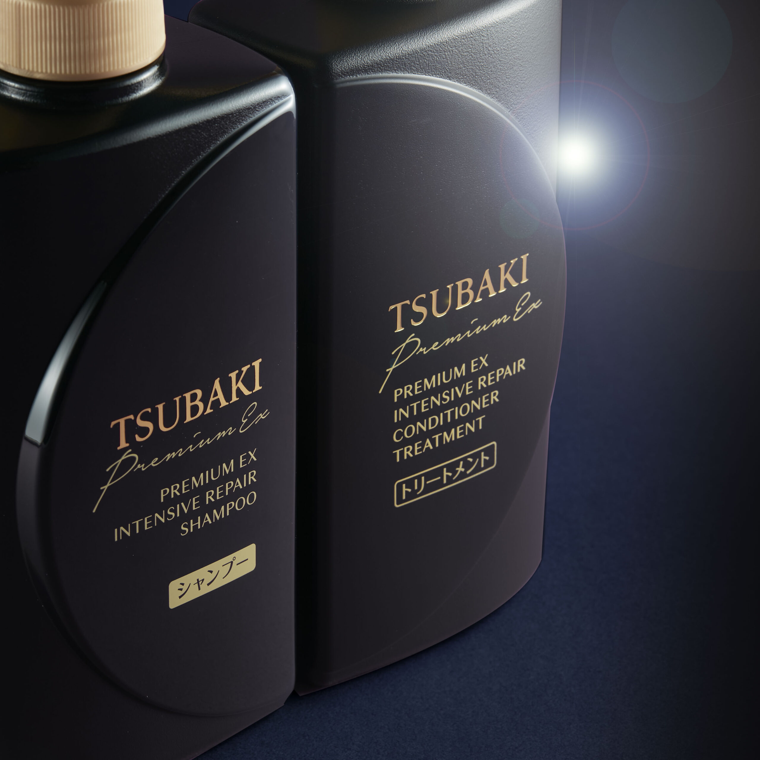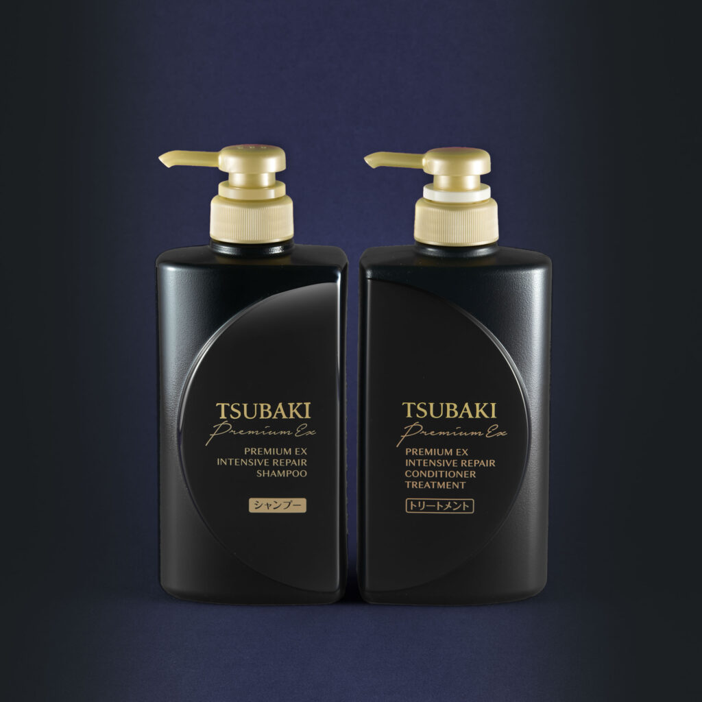 『イオンのチカラ』で新次元のダメージケアを叶える“黒TSUBAKI”の『プレミアムEXシリーズ』のデビューラインナップは、「インテンシブリペア シャンプー」と「インテンシブリペア トリートメント」。