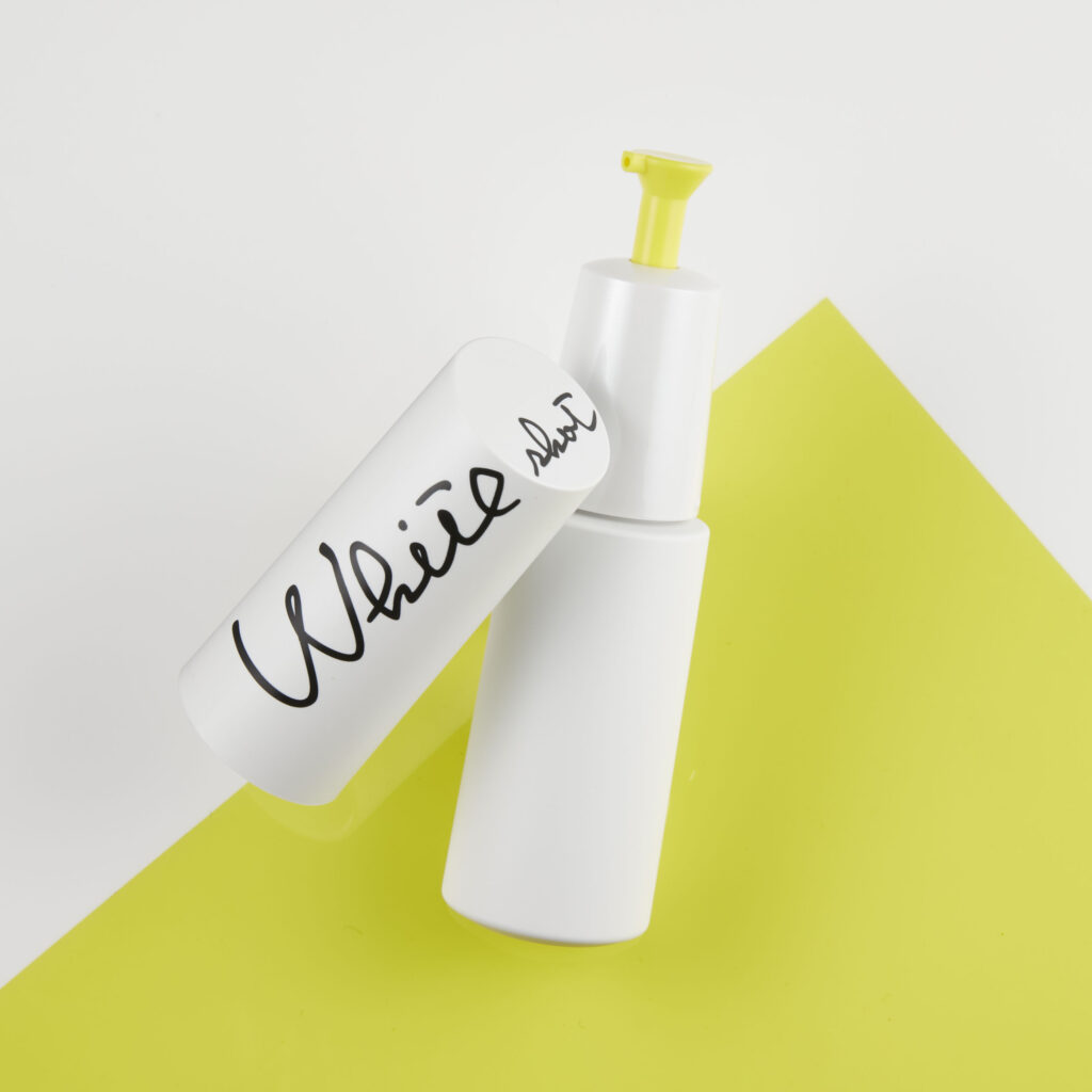サインをイメージした手書き風のロゴは、私たちの肌悩みに真摯に応えるブランドの意志として引き継がれ、肌の定義さえも更新していくという、フレキシブルな発想がダイナミックに配されたポジションからも感じられます。紫外線防御効果を示すSPF表示やふたを開けると出会えるスパークルイエローのポンプからも、新しいホワイトショットの息吹を感じることができます。
