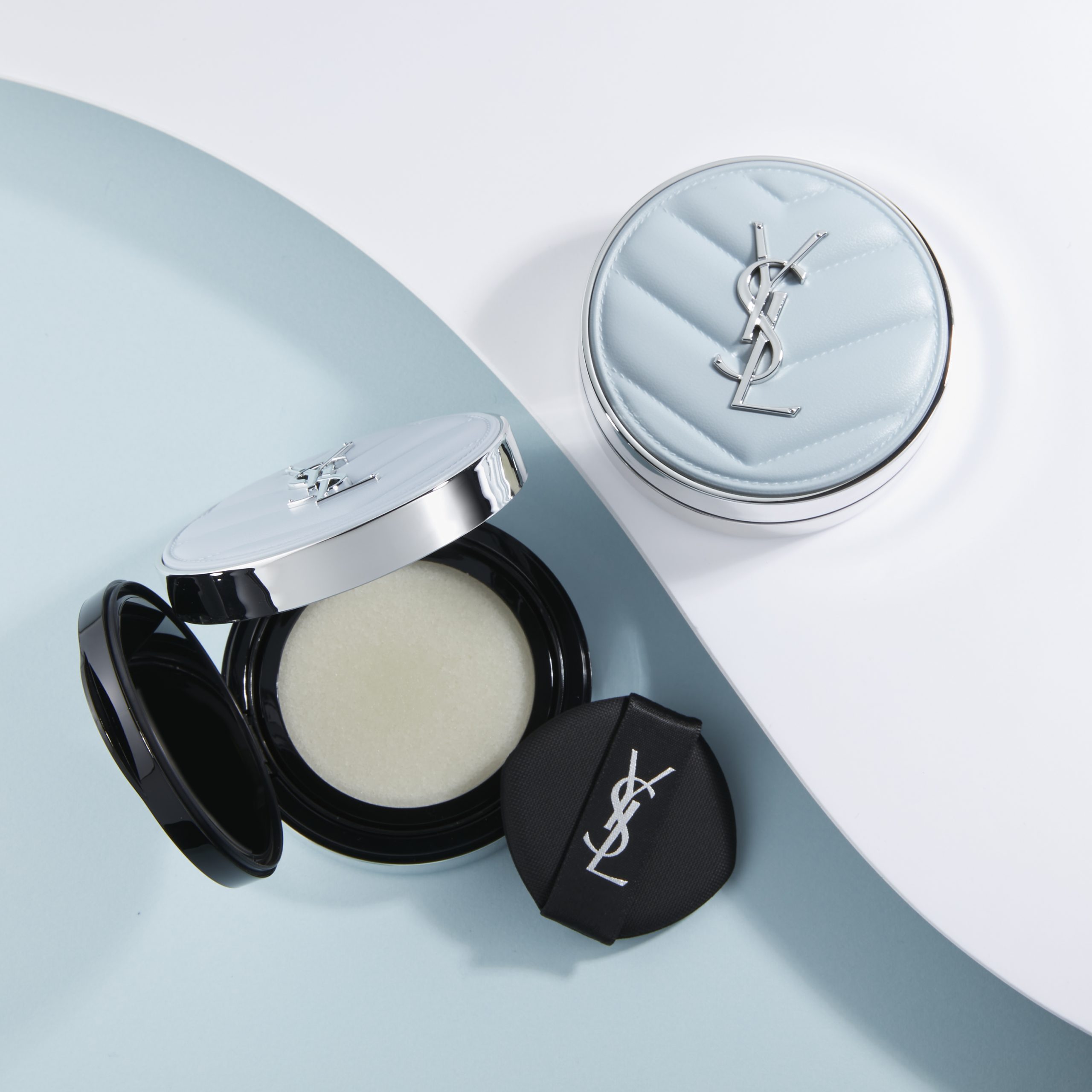 この夏、メイクの楽しさと仕上がりの美しさと共に心地よさと機能性をも進化させ続けるイヴ・サンローランのクッションから、輝くシルバーのカサンドラロゴとアイシーブルーのヴィーガンレザーで登場したのは、瞬間クーリングを叶える、“お直し”クッション フェイスパウダー「オールアワーズ ブラークッション」。